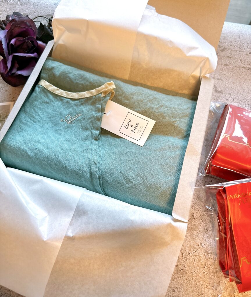 お友だちのTちゃんからは教室オープンのお祝いにと、素敵なイニシャル入りエプロンもいただいて感激💕