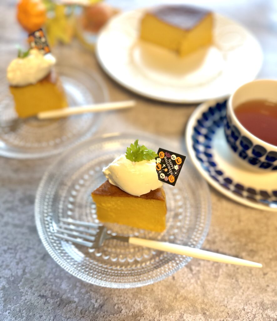 レッスン後のティータイムにお出ししたのは、かぼちゃのチーズケーキ🫖
