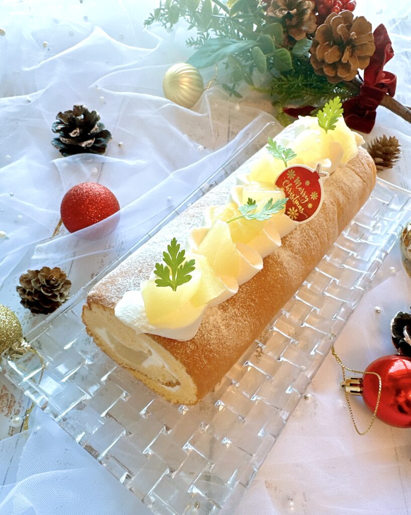 レッスン後のディータイムには、先日作った洋梨のコンポートを使いロールケーキを作り、いただいたシュトーレンと共に盛り合わせにしてお出ししました♪