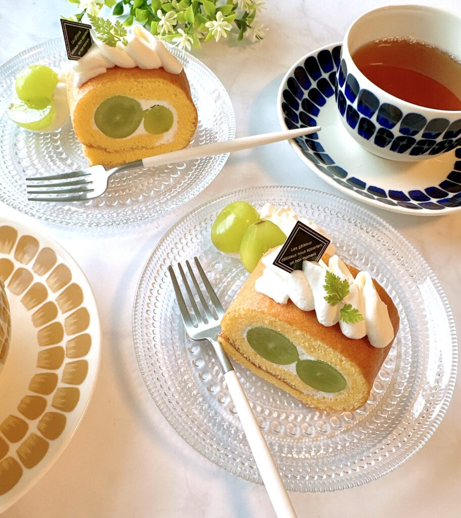 レッスン後にお出ししたのは、シャインマスカットのロールケーキ☕️