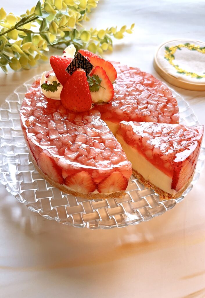 レッスン後のティータイムにお出ししたのは、苺のレアチーズケーキ🍓