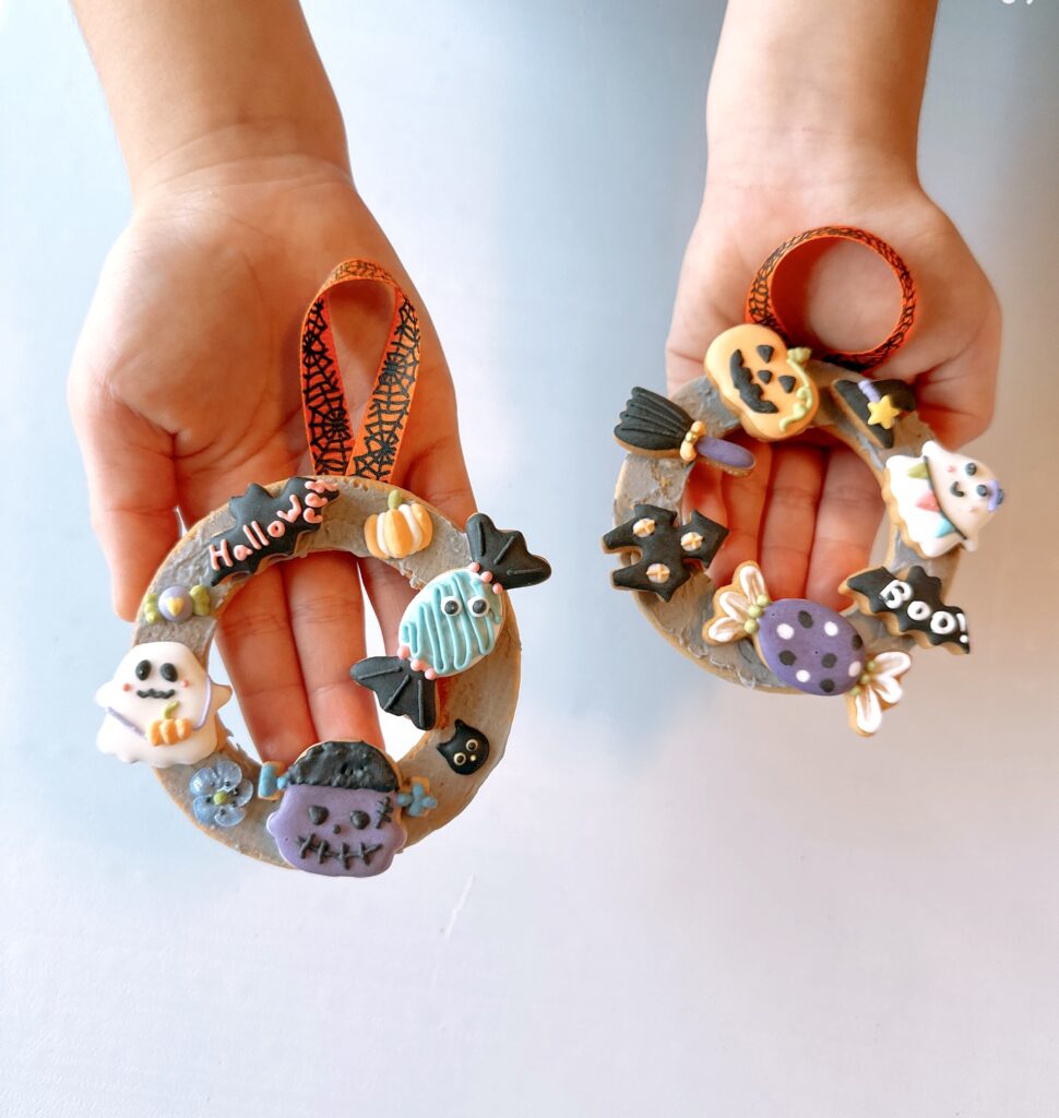 週末に娘と一緒に、手のひらサイズのハロウィンミニリースクッキーを作りました🎃