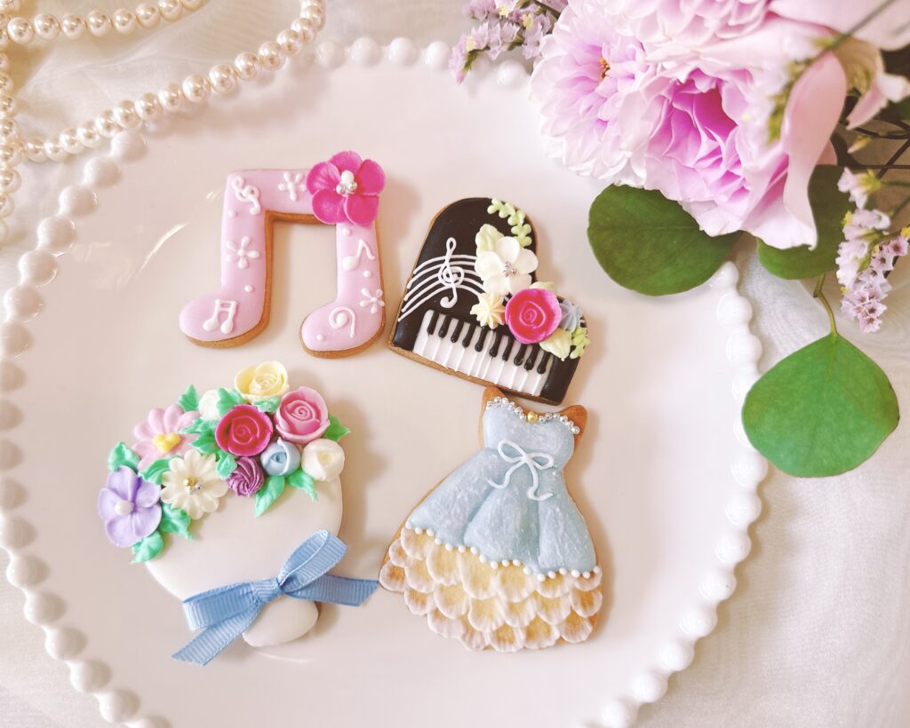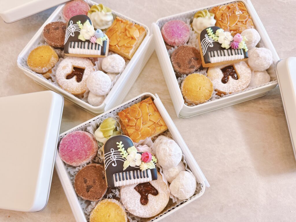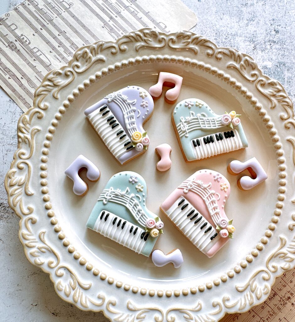 ピアノや音符のアイシングクッキーも作ってクッキー缶の主役に!