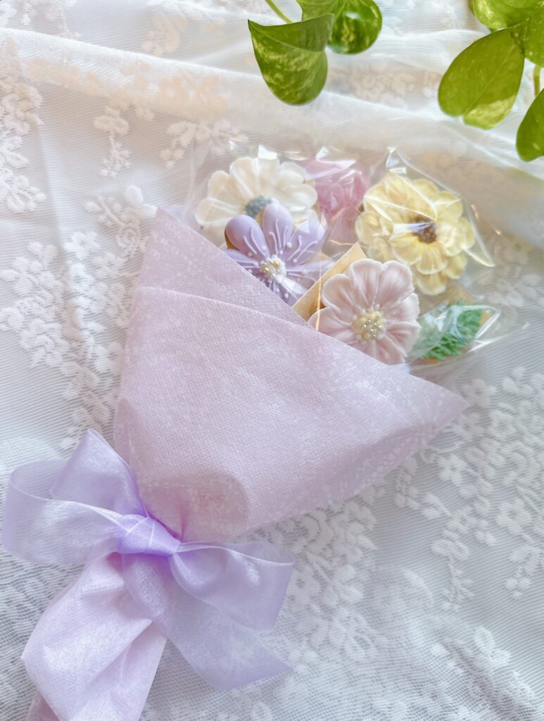 お花のアイシングクッキーにはスティックを付けて♪