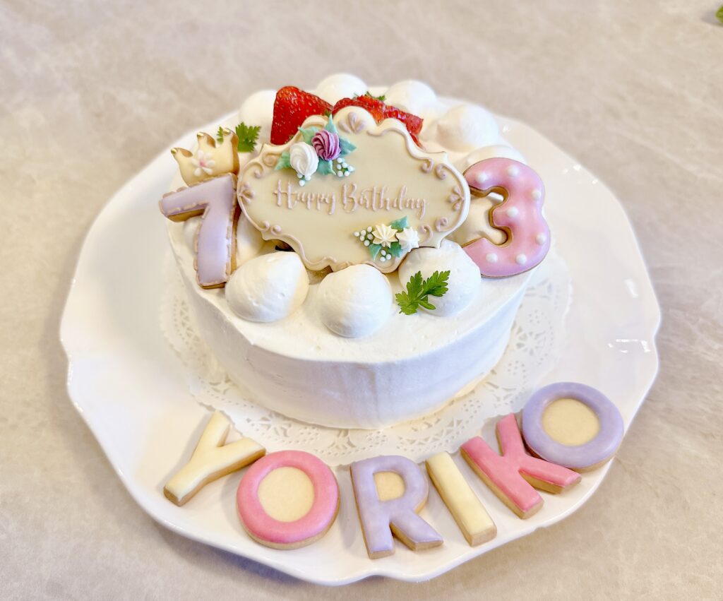 ちなみに昨年はこんな感じのケーキとアイシングクッキーにしました💐