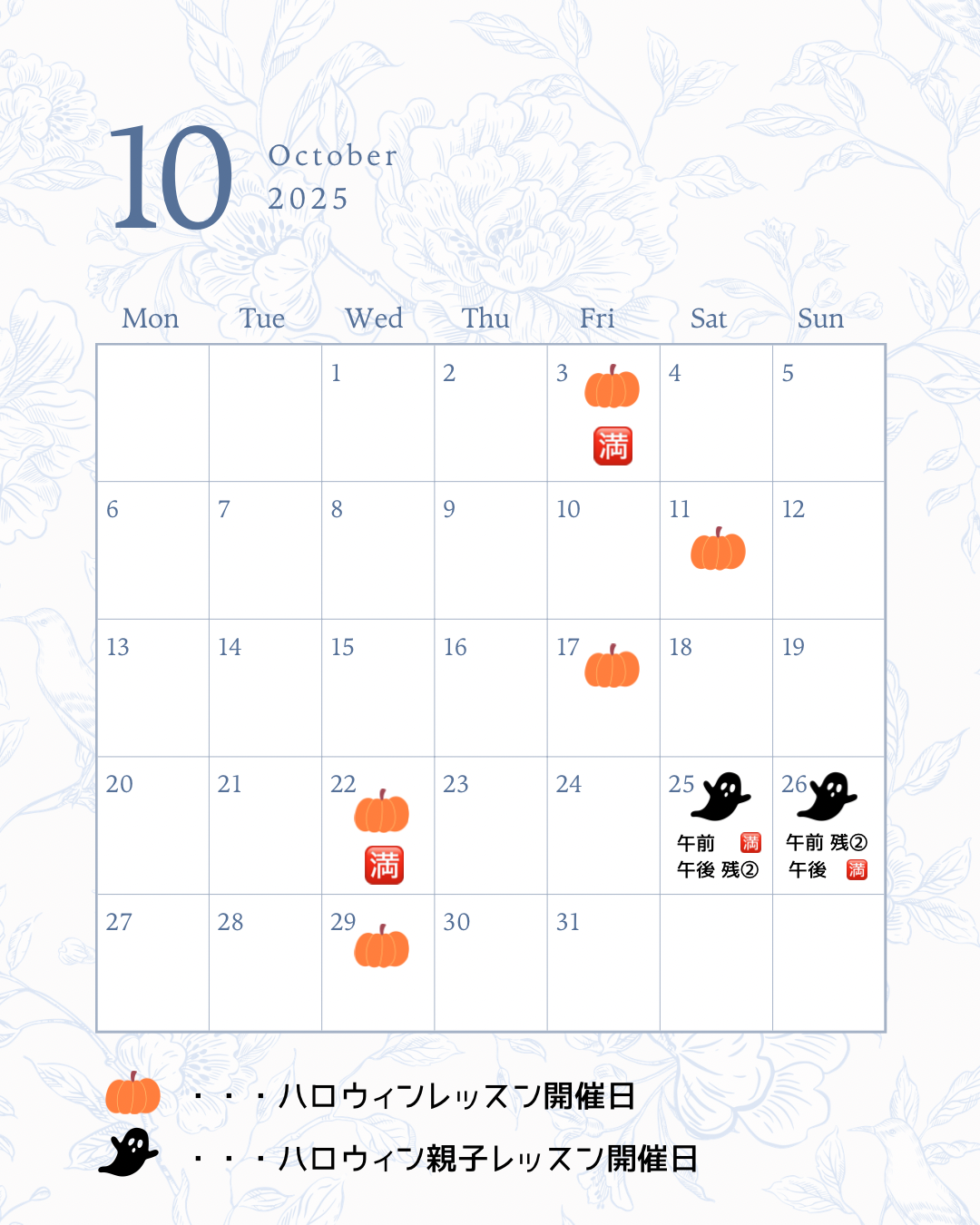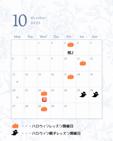 ※10月はハロウィンレッスン中心の開催となりますが、体験レッスンもご要望あればご連絡ください✨
