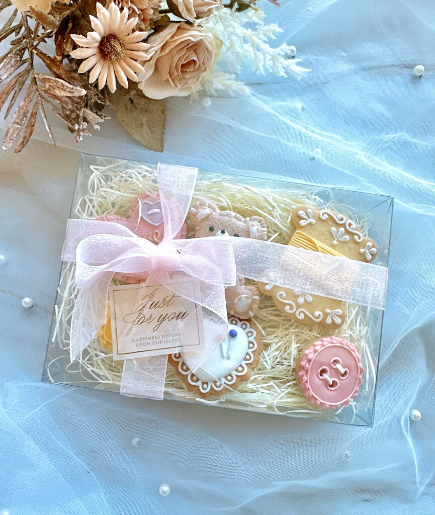アイシングクッキー完成後は、ギフトBOXに入れてリボンを付けてラッピング✨